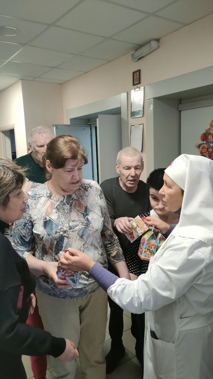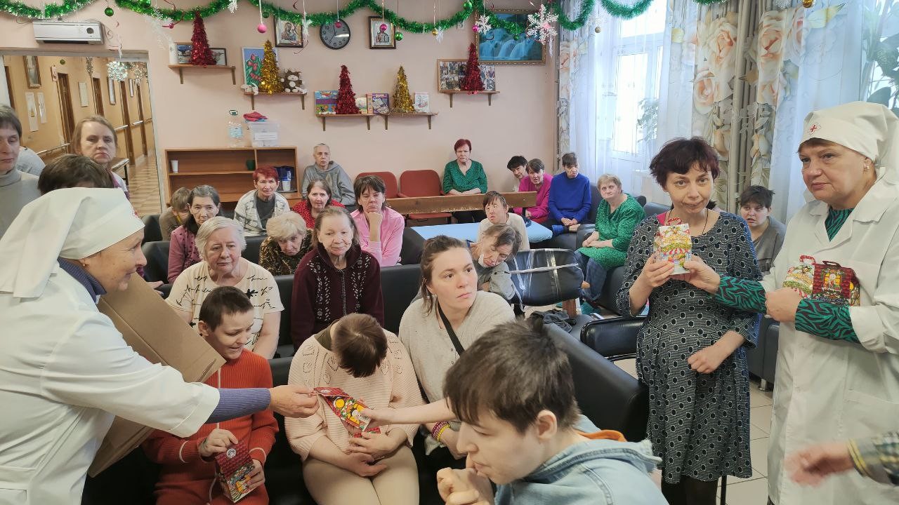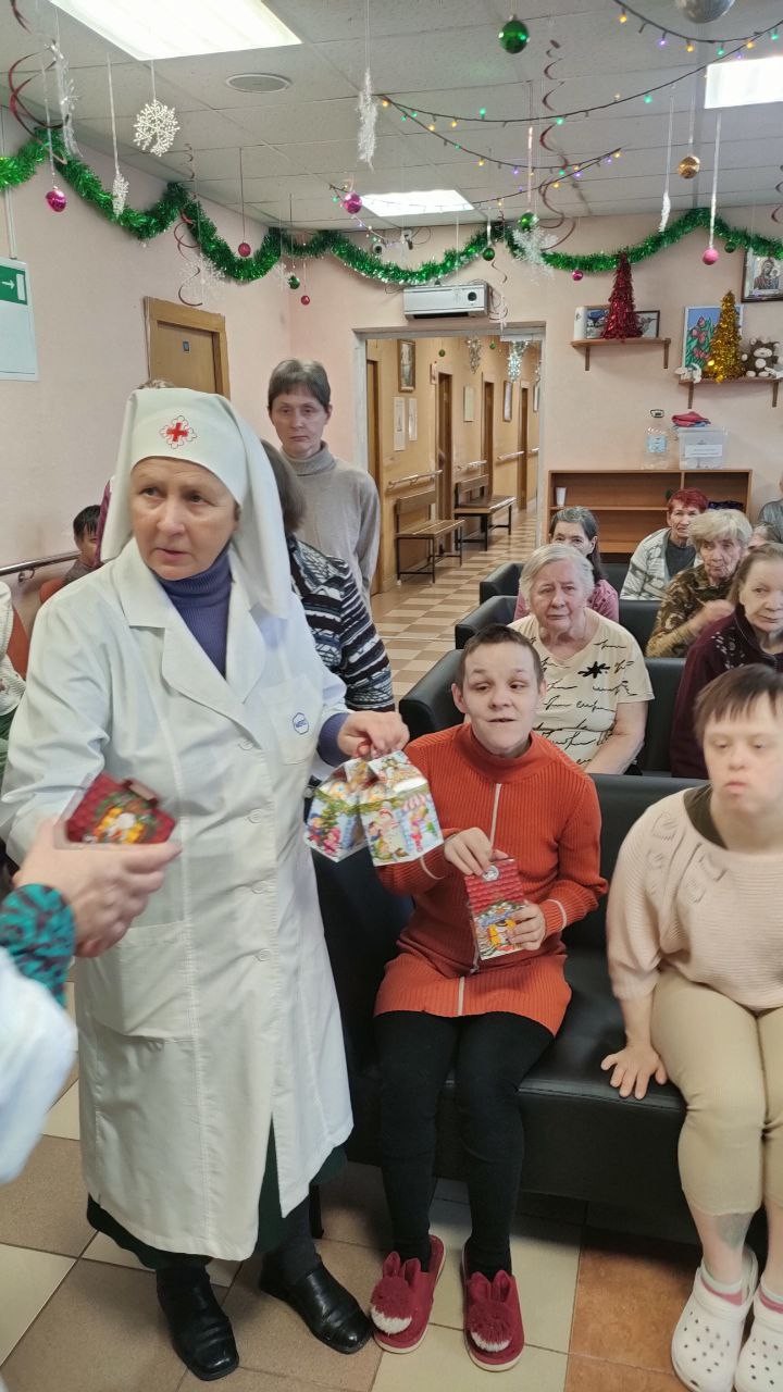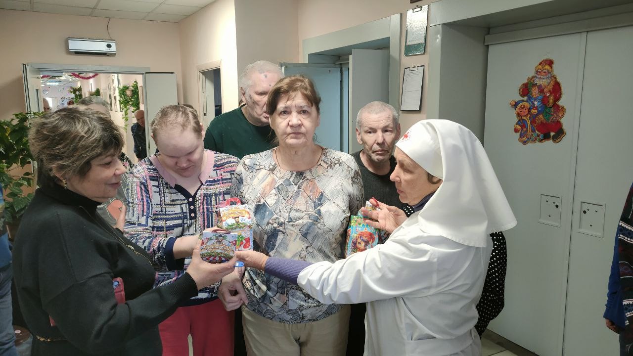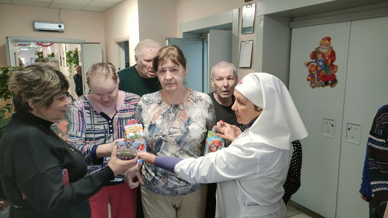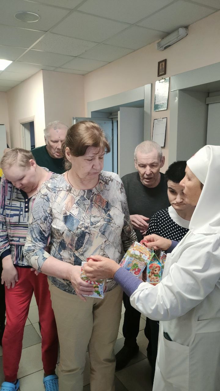 8 января 2025 года сестры Группа Милосердия «Преображение» поздравляли со светлым праздником Рождества Христова своих подопечных , 550 человек, в Звенигородском ПНИ (ныне Добрый дом «Одинцово») и вручали всем проживающим в интернате сладкие Рождественские подарки..