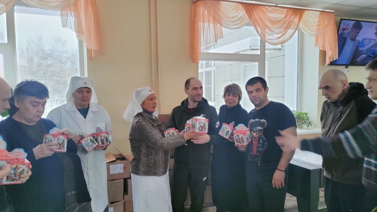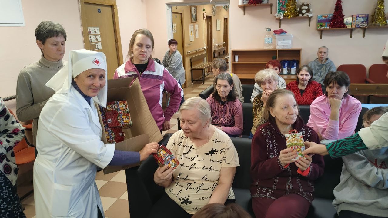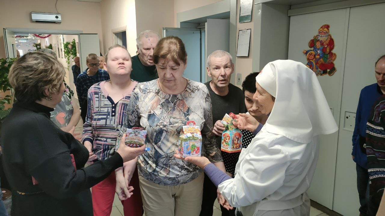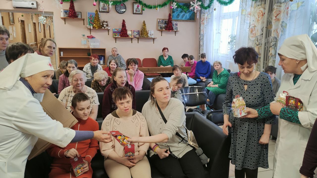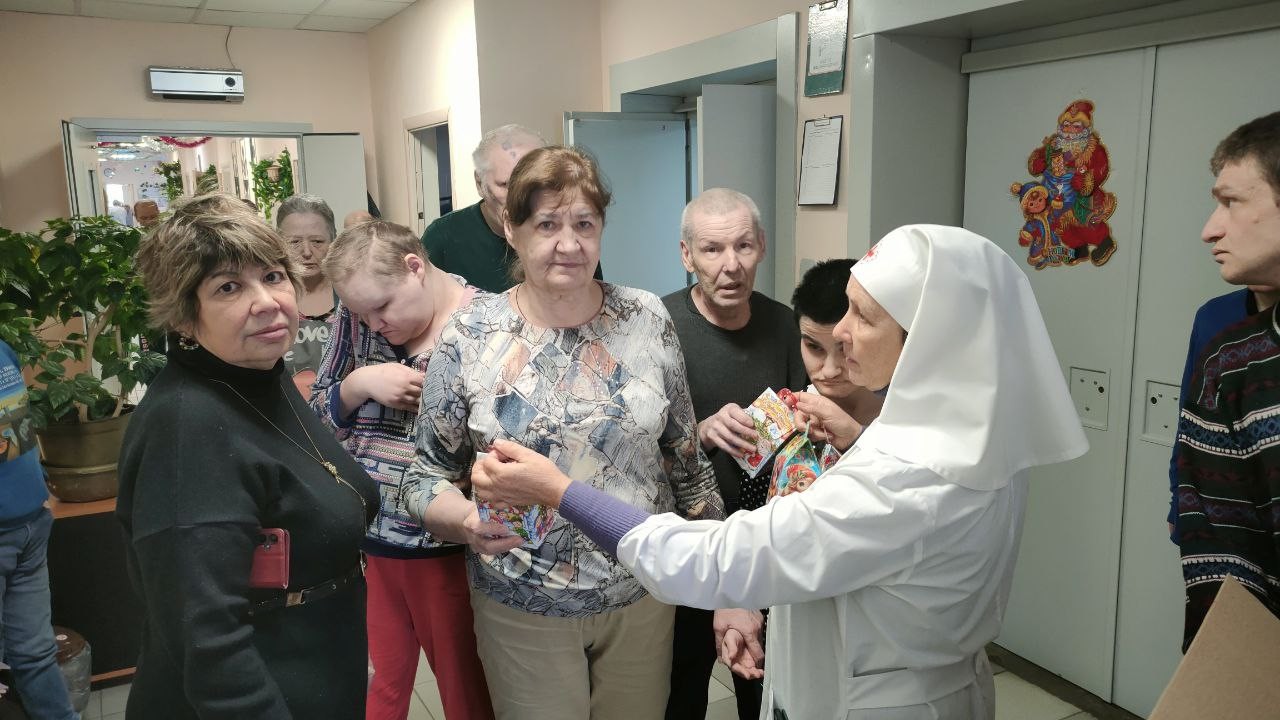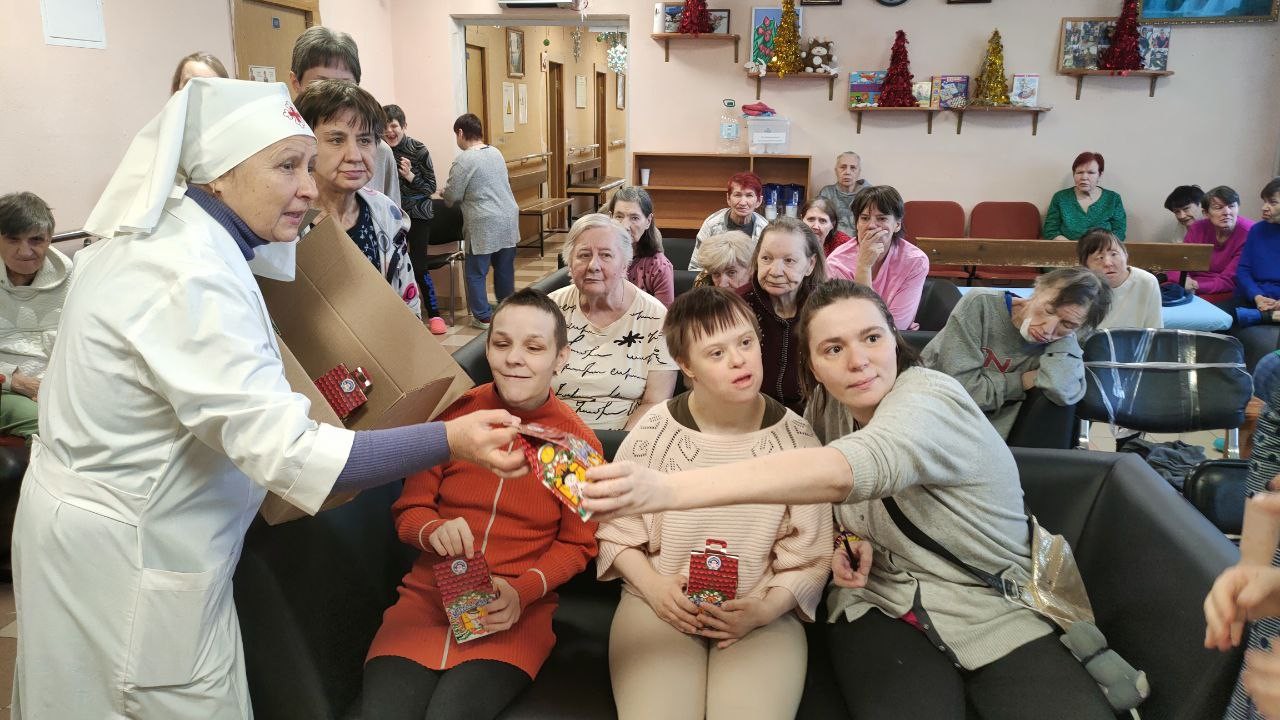 8 января 2025 года сестры Группа Милосердия «Преображение» поздравляли со светлым праздником Рождества Христова своих подопечных , 550 человек, в Звенигородском ПНИ (ныне Добрый дом «Одинцово») и вручали всем проживающим в интернате сладкие Рождественские подарки..
