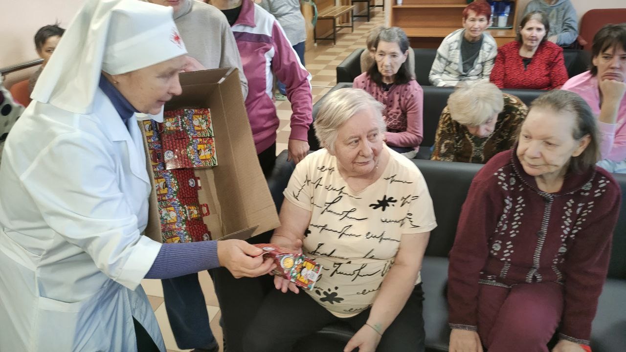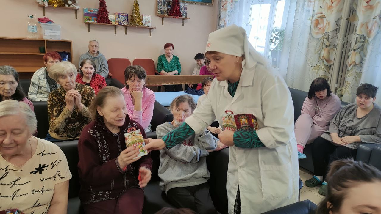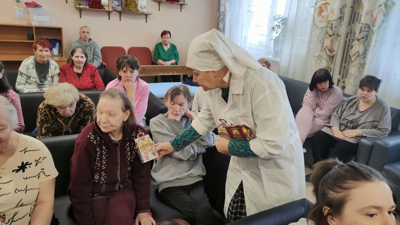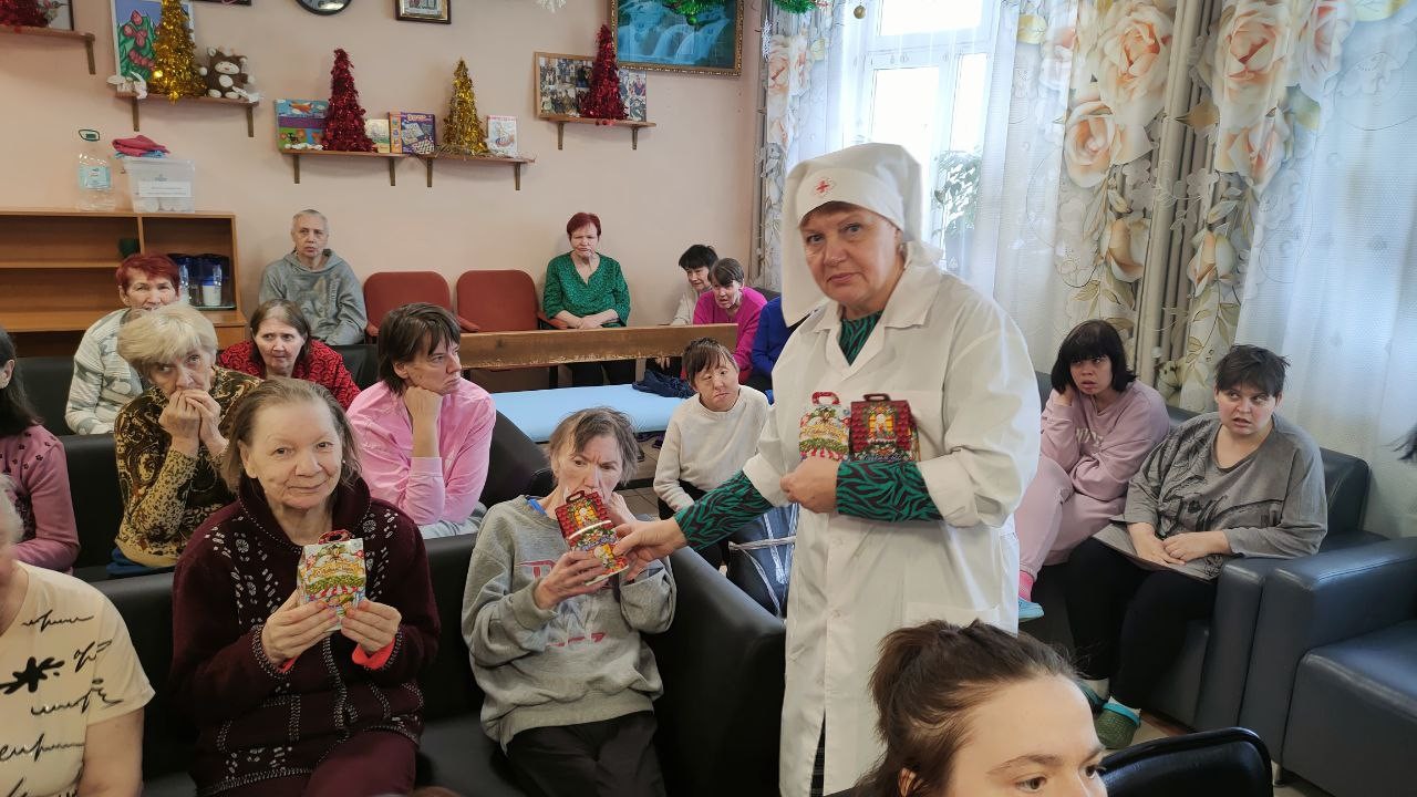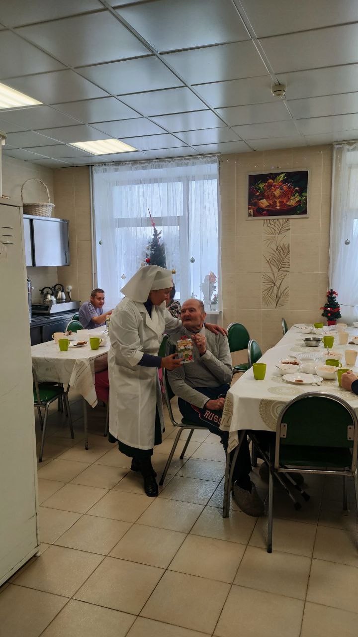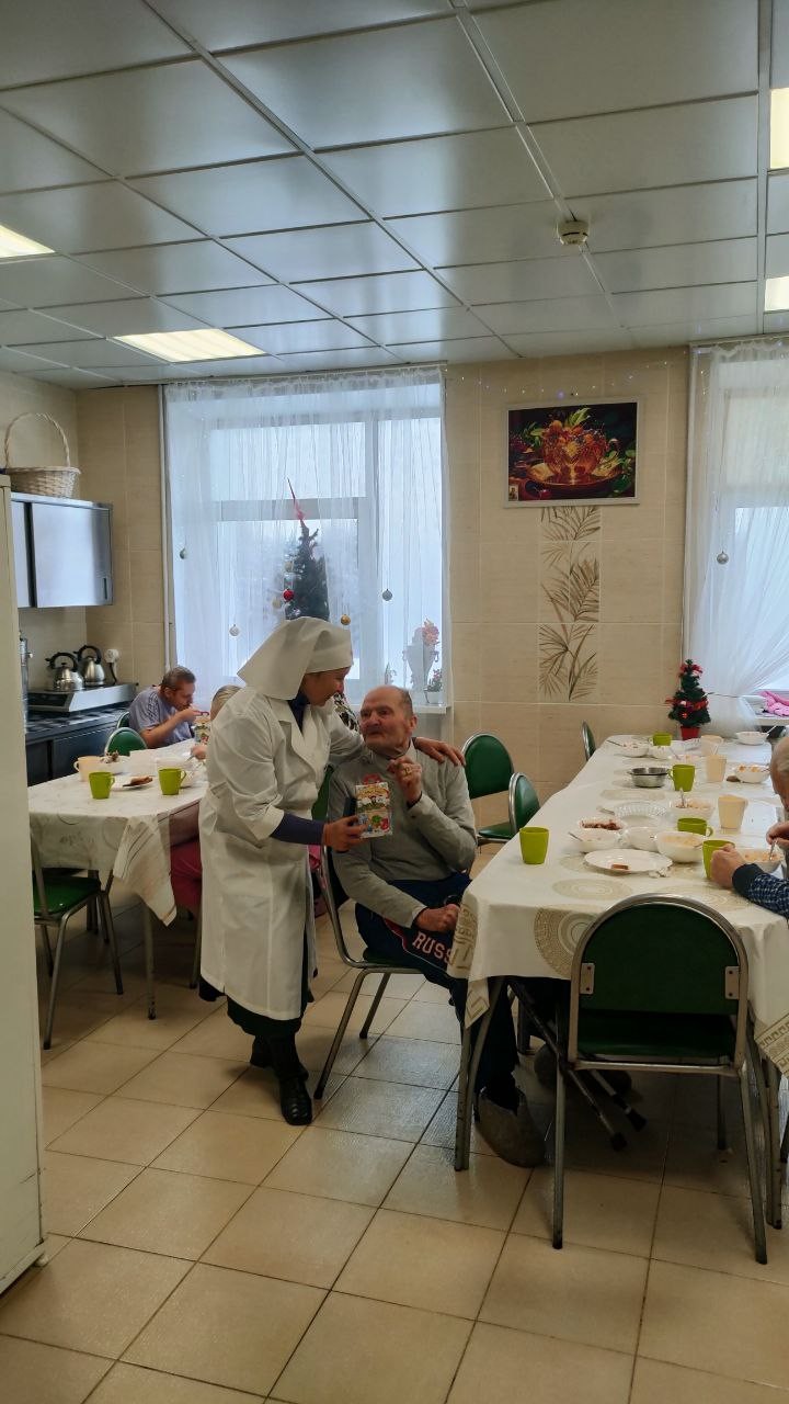 8 января 2025 года сестры Группа Милосердия «Преображение» поздравляли со светлым праздником Рождества Христова своих подопечных , 550 человек, в Звенигородском ПНИ (ныне Добрый дом «Одинцово») и вручали всем проживающим в интернате сладкие Рождественские подарки..
